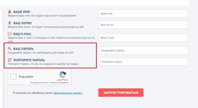При регистрации пользователь указывает пароль для акк.