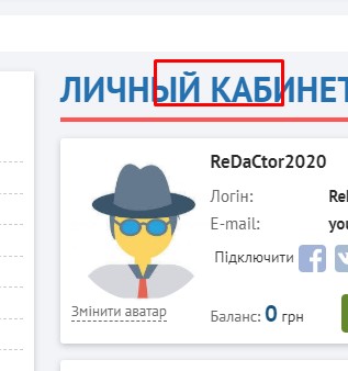4. Надпись Личный кабинет в кабинете