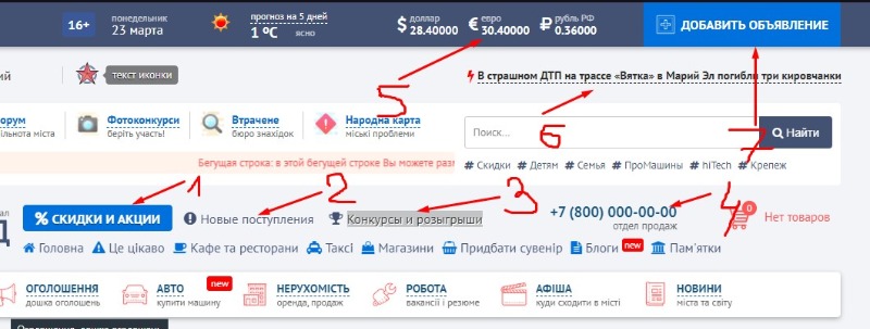 А вот как изменить курс валют, надпись НЕТ ТОВАРОВ, и пункты меню указанные на скриншоте?