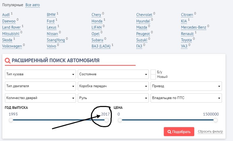 Где изменить год выпуска авто, в форме поиска - стоит 2017г.