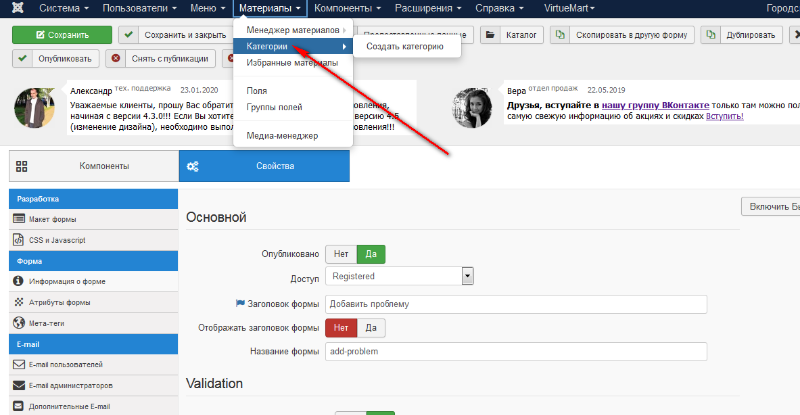 check Категории материалов в Joomla