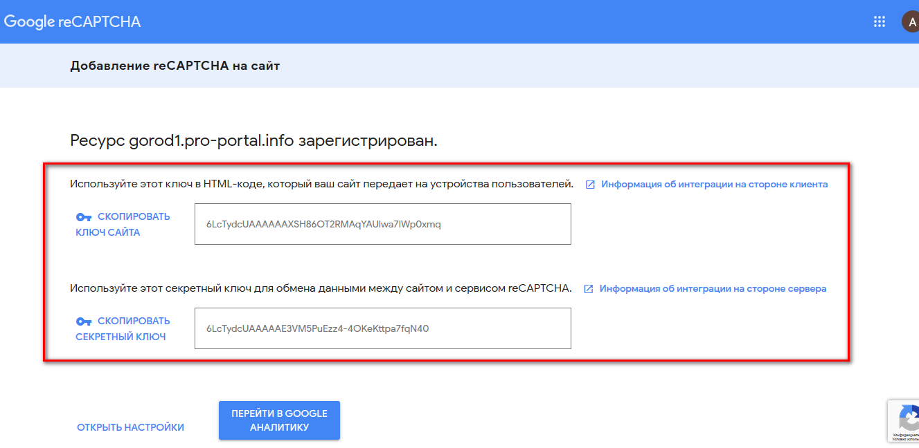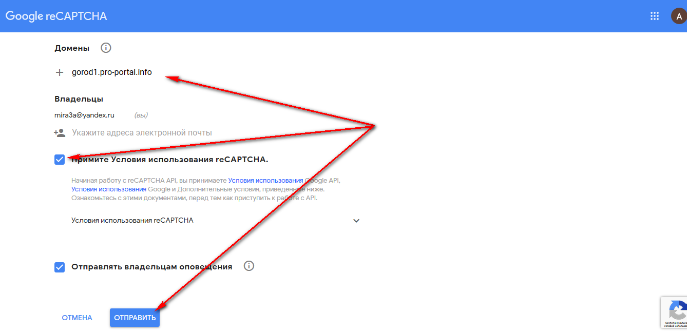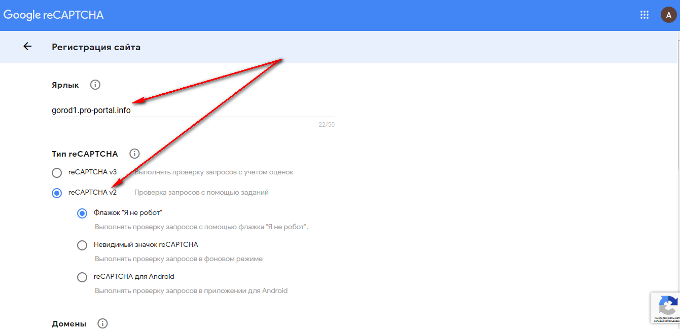 Настройка reCaptcha в форме регистрации и комментариях портала