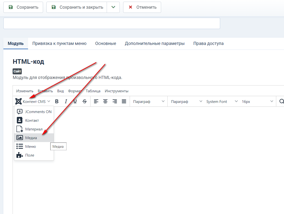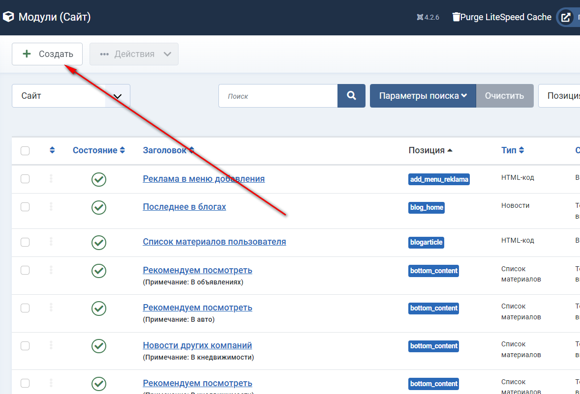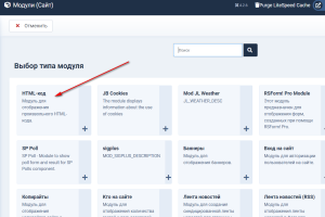 Для этого необходимо перейти Контент/Модули сайта и Создать новый модуль с типом HTML-код.