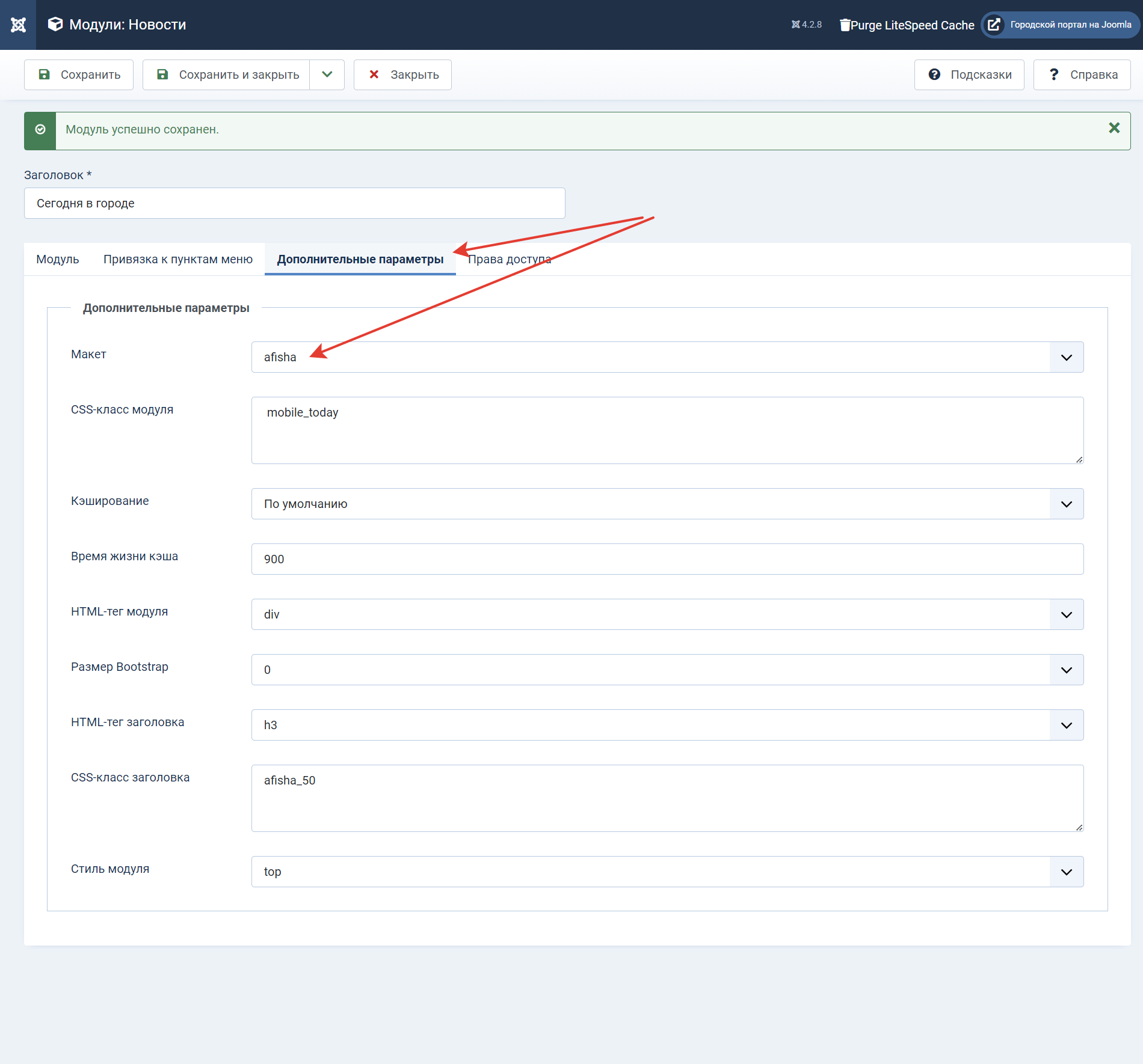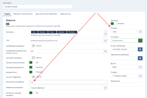 - Новости компаний: позицию left_block меняем на right_menu (на вкладке Дополнительные параметры выставляем Стиль модуля top)