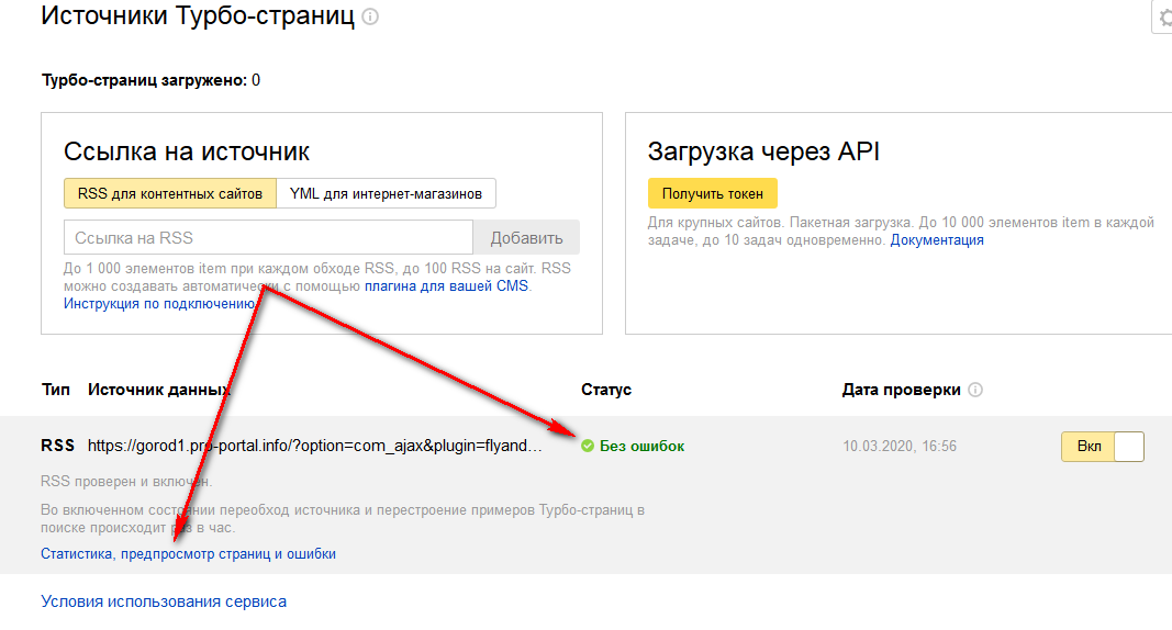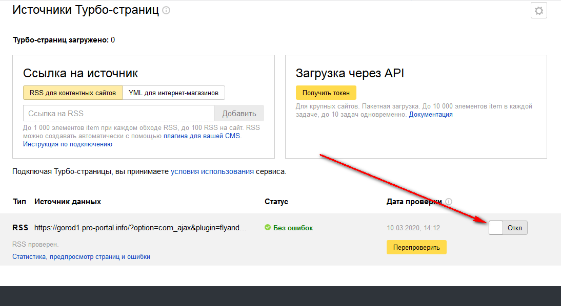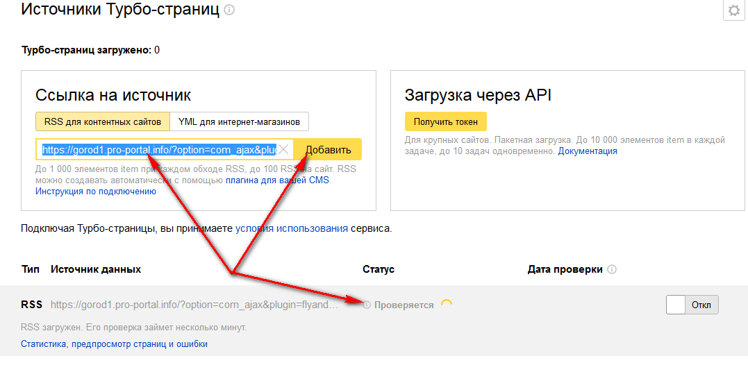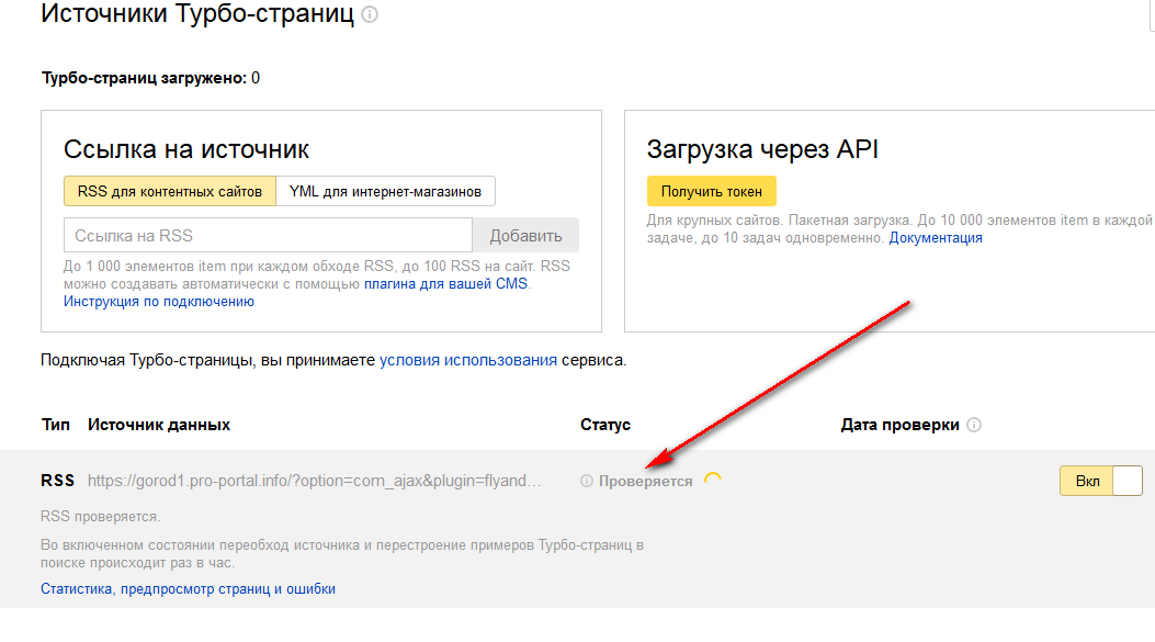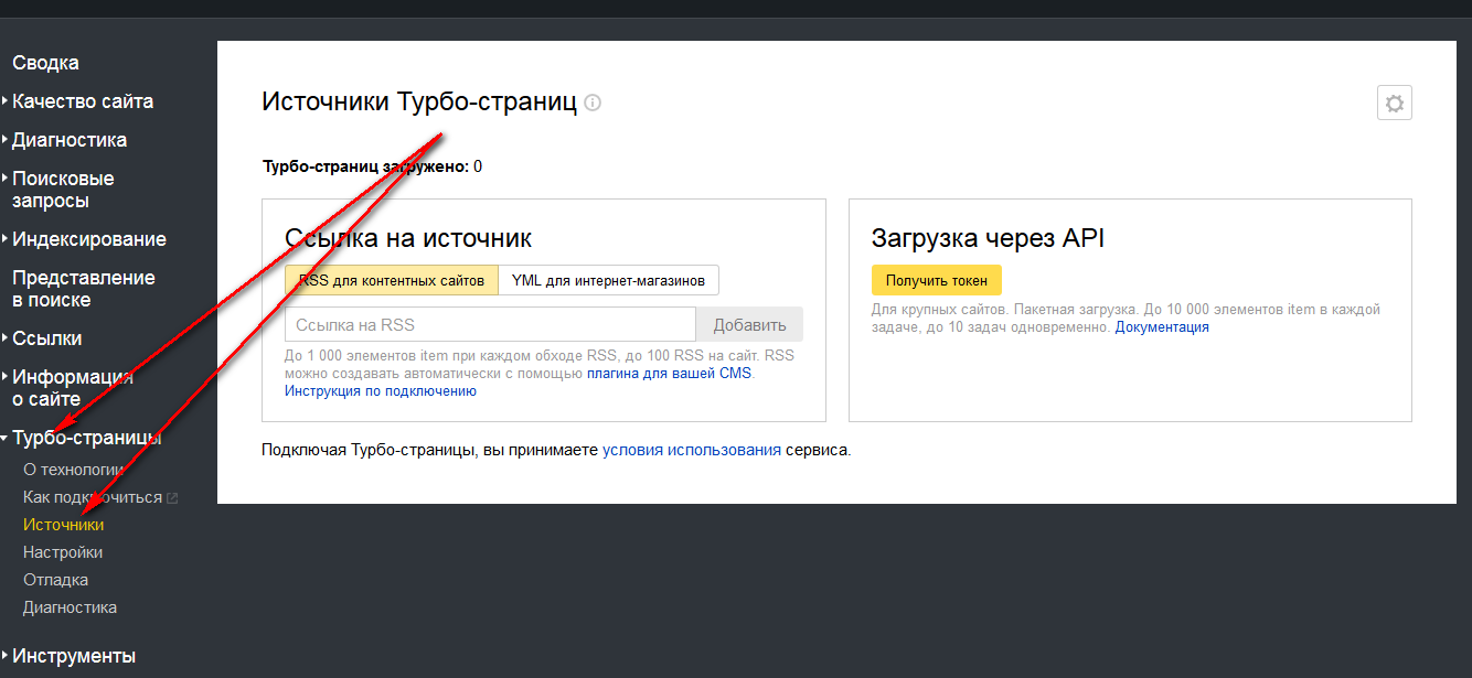 В панели Вебмастера переходим Турбо-Страницы/Источники. Добавляем ссылку на источник и ожидаем проверки.