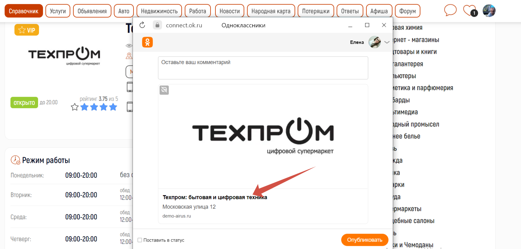 • Материалам добавлена разметка Open Graph, для корректных репостов в социальные сети, с передачей стоимости товаров или услуг, или адреса, в зависимости от раздела