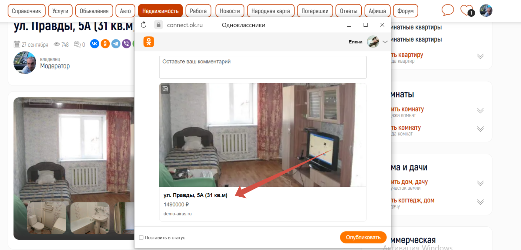 Сегодня вышла новая версия городского портала "мой Город" для шаблона Airus 1.2.2, в которой добавил к материалам разметку Open Graph для корректных репостов в социальные сети. Теперь в ссылке передается информация о стоимости товара или услуги, или адресе в зависимости от раздела, а так же исправил все найденные ошибки и недочеты.