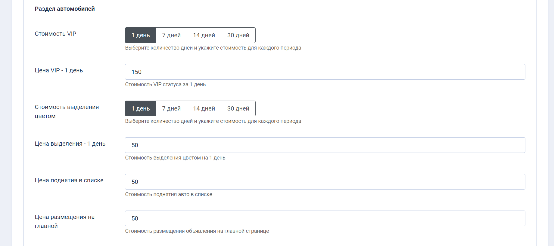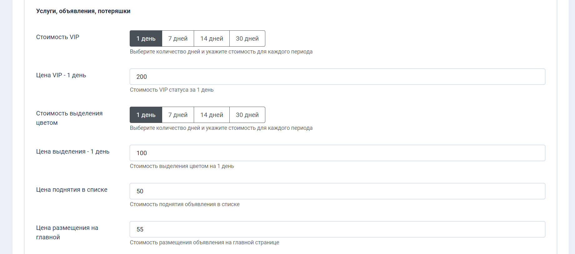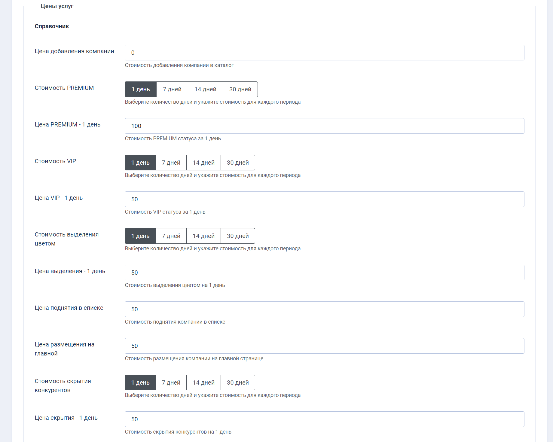 В этом обновлении я перенес цены платных услуг на 1 страницу в настройках шаблона. Менять цены теперь можно очень быстро, а главное при изменении форм, не нужно менять их повторно!