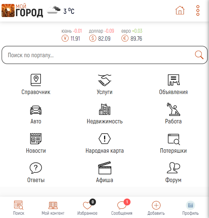 Городской портал "мой Город" отлично отображается на любых видах мобильных устройств и телефонах. Это позволит расширить аудиторию за счет мобильного трафика.