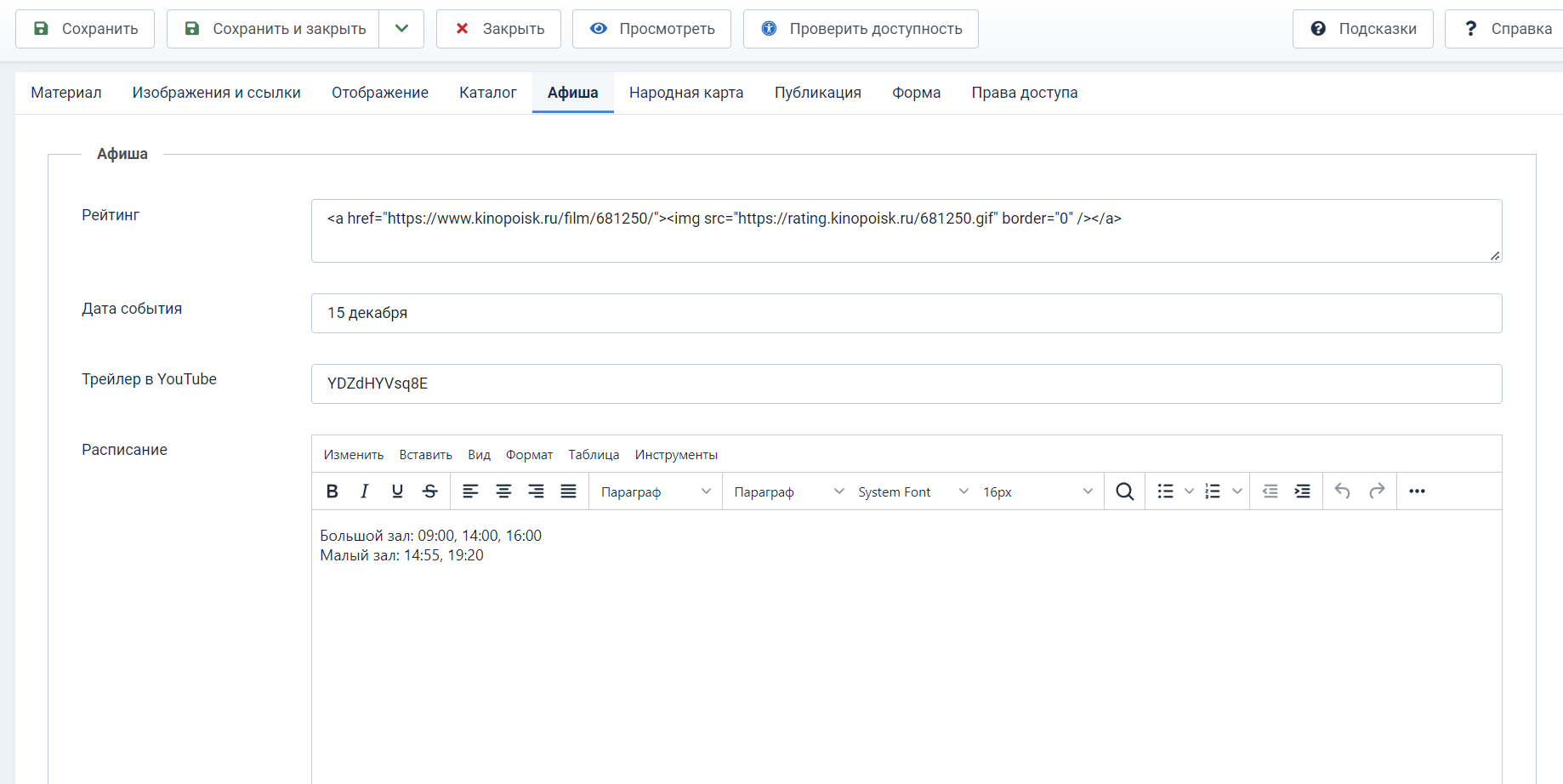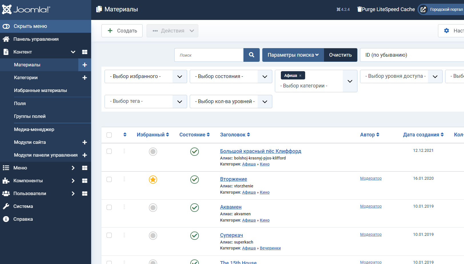 Афиша событийв городском портале "мой Город" на CMS Joomla