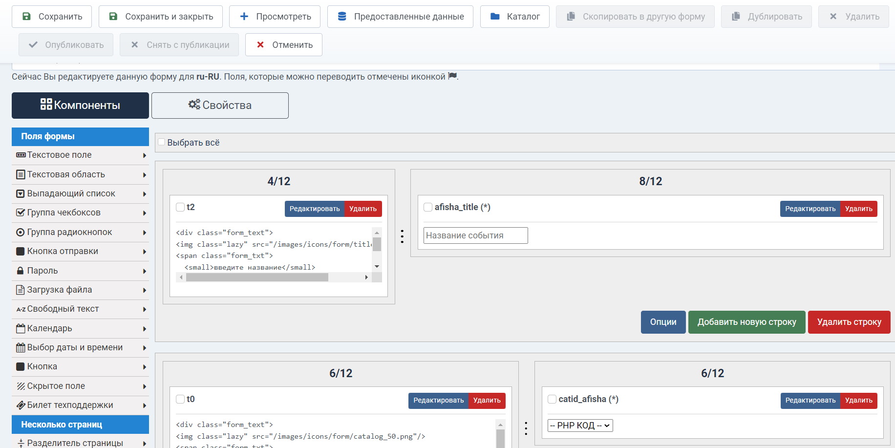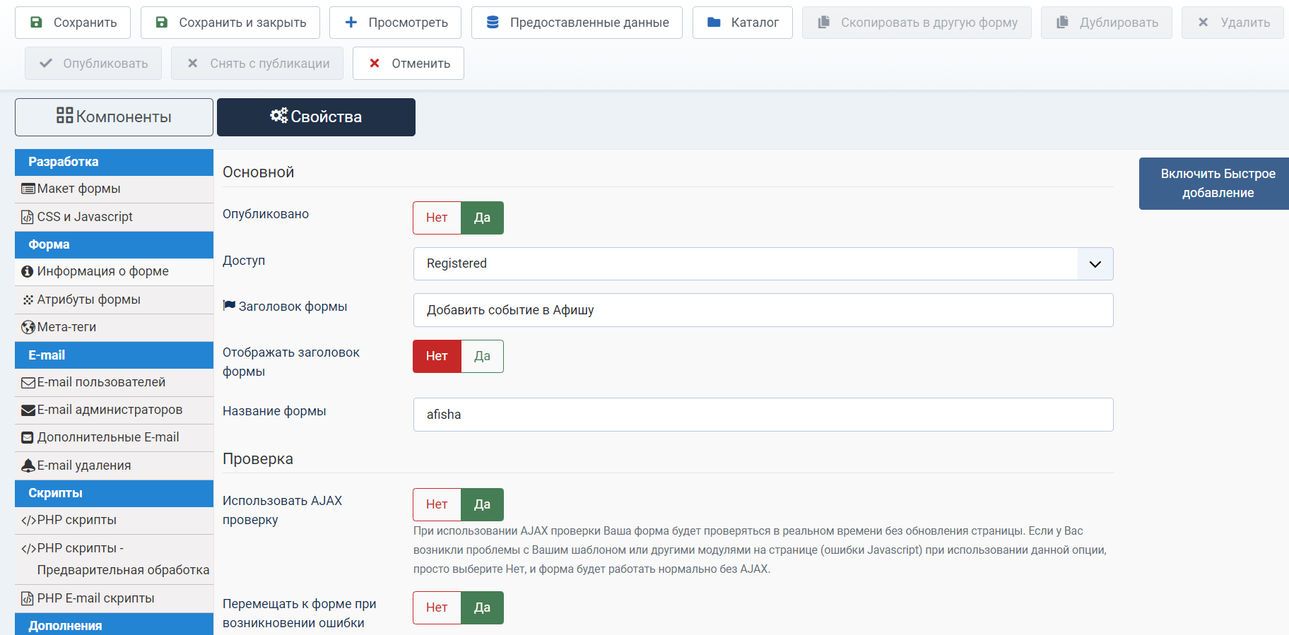Формы добавления и редактирования событий реализованы с помощью компонента RS Form.
