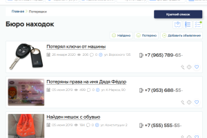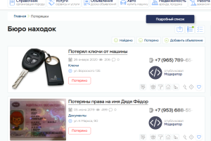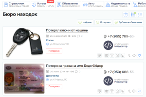 Раздел Бюро находок практически ни чем не отличается от раздела Доски объявлений. В этом разделе пользователи размещают объявления о своих пропажах или находках