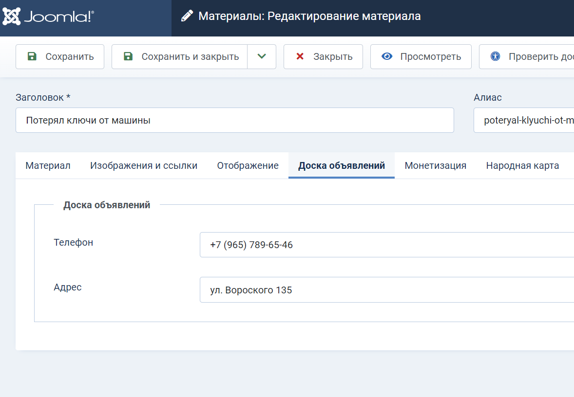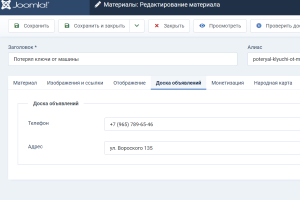 Бюро находокв городском портале "мой Город" на CMS Joomla