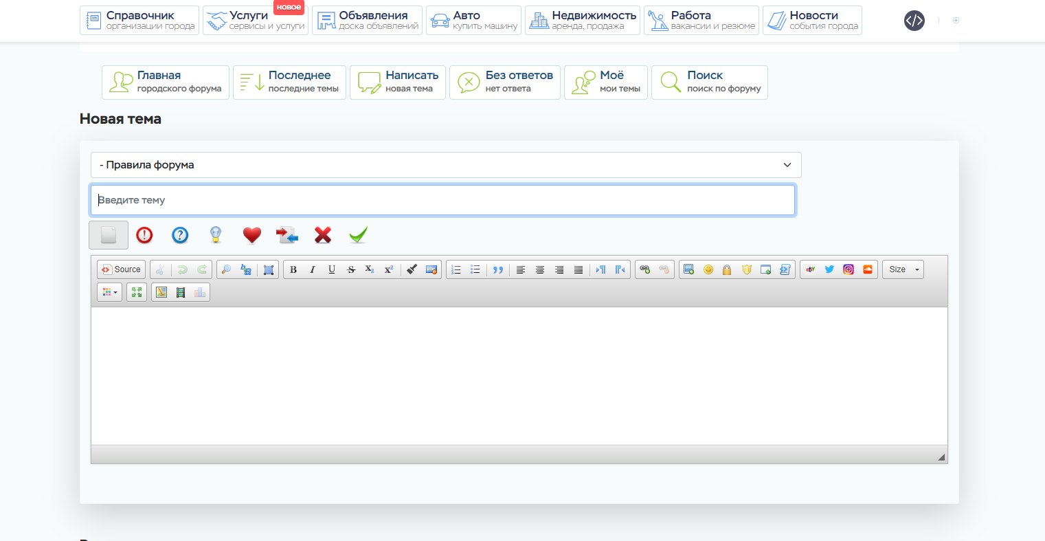 Форум портала "мой Город" - это полноценное сообщество для общения посетителей портала, где пользователи смогут общаться друг с другом, высказывать мнения и жалобы. Форум полностью интегрирован в наш сайт и не требует дополнительной регистрации
