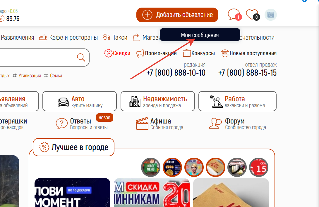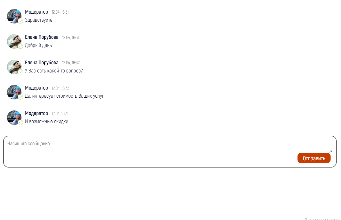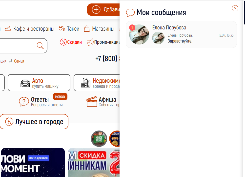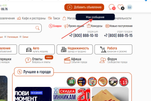 С помощью системы личных сообщений, пользователи портала могу вести on-line переписку друг с другом по любому объявлению или услуге
