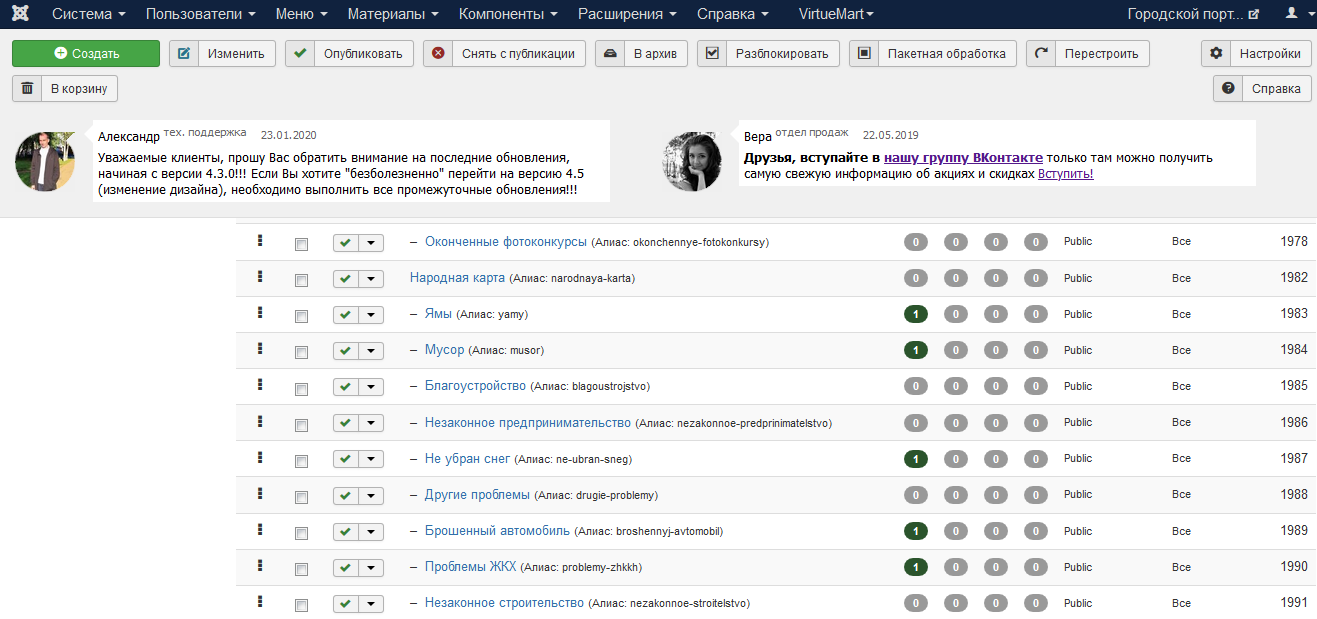 Каталог городских проблемв городском портале "мой Город" на CMS Joomla