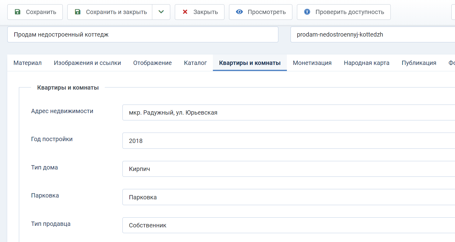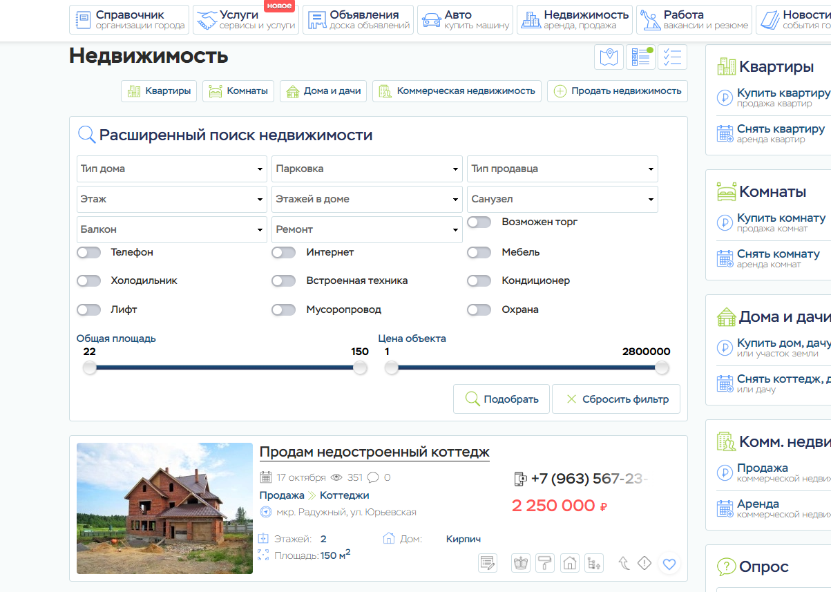 Каталог продажи и аренды недвижимостив городском портале "мой Город" на CMS Joomla