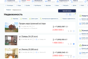 Очень простой и функциональный каталог продажи и аренды недвижимости, в котором уже добавлены все основные возможные разделы для организации хорошего каталога недвижимости. С помощью этого раздела, любой пользователь сможет продать или сдать в аренду любой объект недвижимости