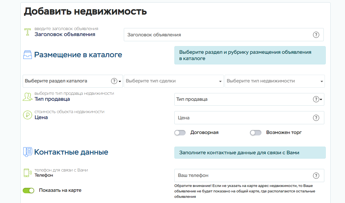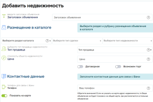 Любой пользователь после регистрации имеет возможность добавить неограниченное количество объявлений о продаже или аренде своей недвижимости. Сделать это можно с помощью формы добавления объекта недвижимости, в ней пользователь заполняет все необходимые данные, а так же ставит точку на карте Google.