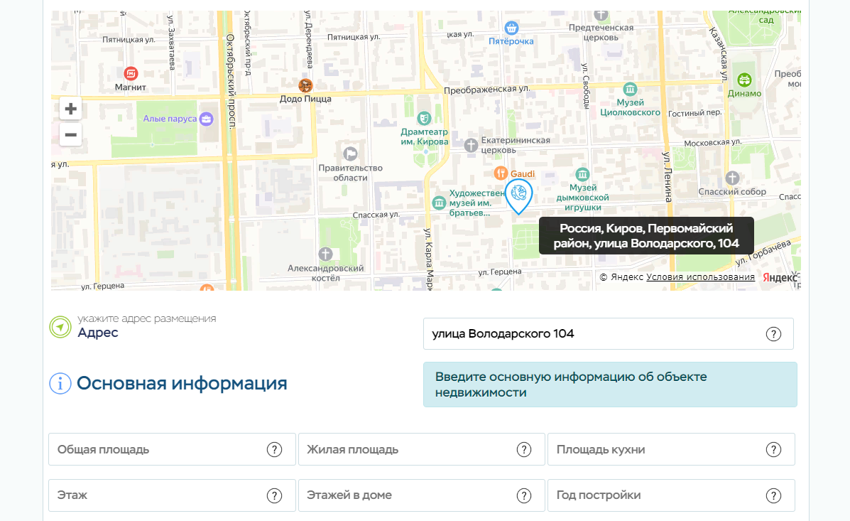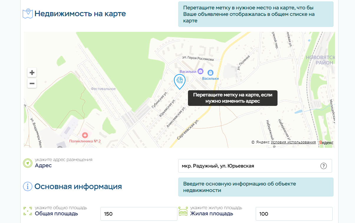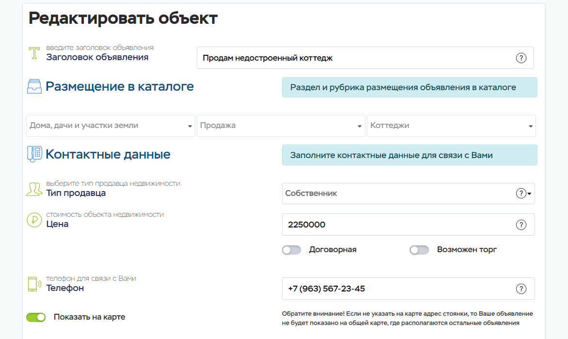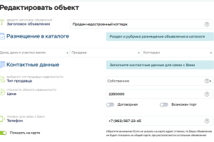 Для редактирования объекта недвижимости пользователю доступна вся та же информация что и при добавлении.