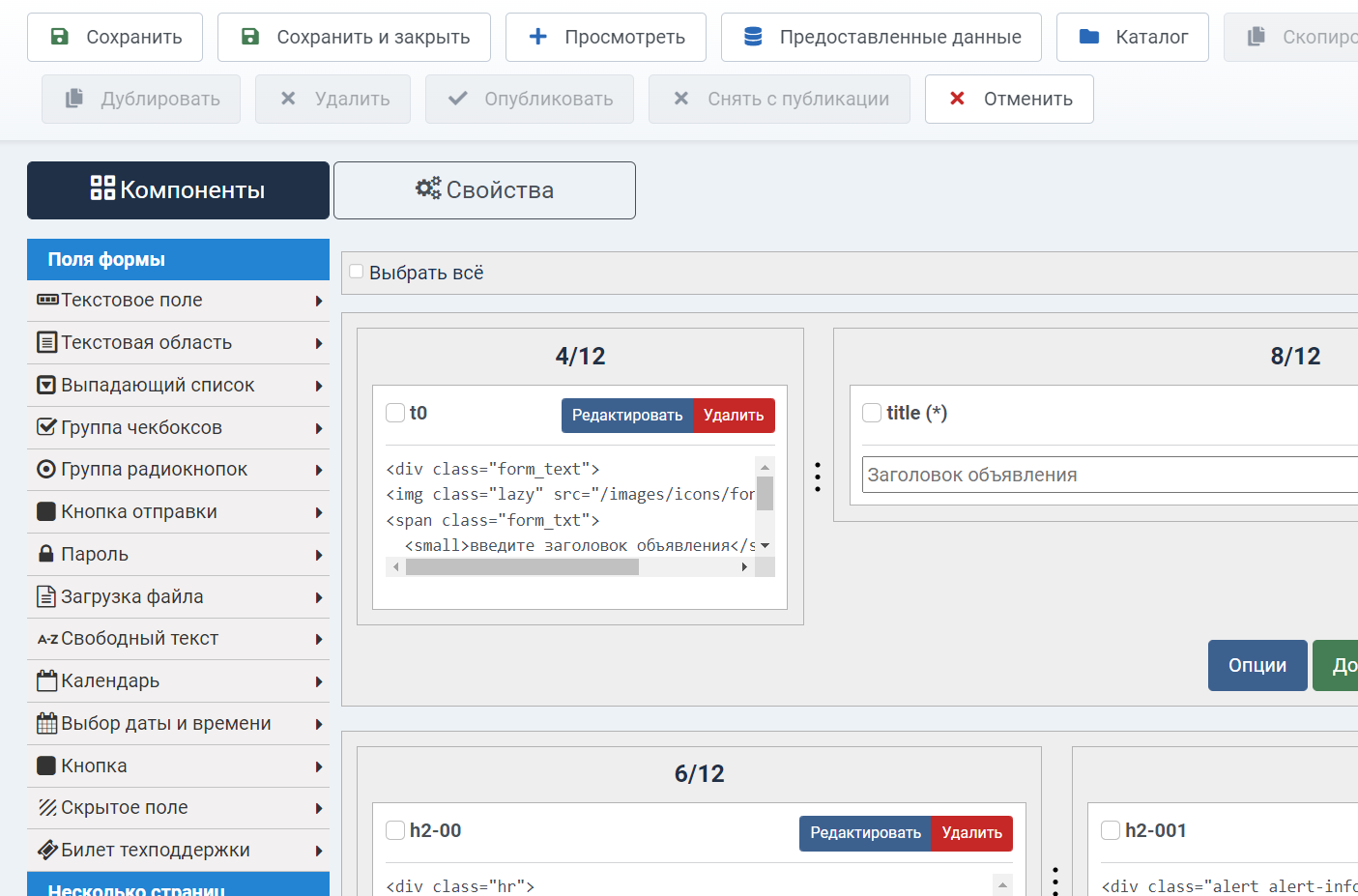 Формы добавления и редактирования недвижимости реализованы с помощью компонента RS Form