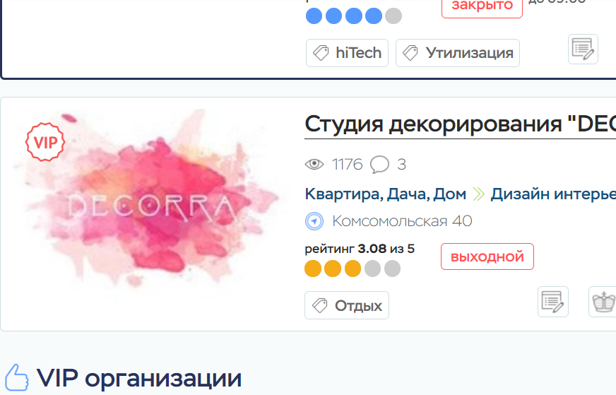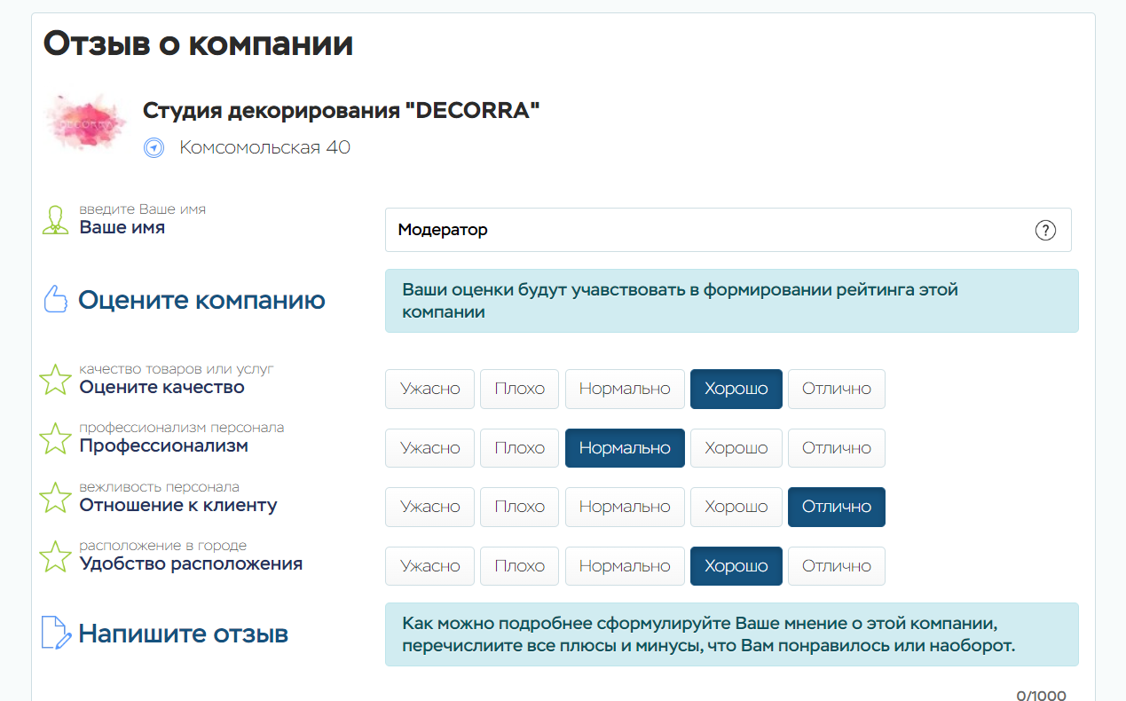 У каждой компании в каталоге организаций в нашем городском портале есть рейтинг, который формируют пользователи, оставляя компании отзывы и выставляя ей оценки.